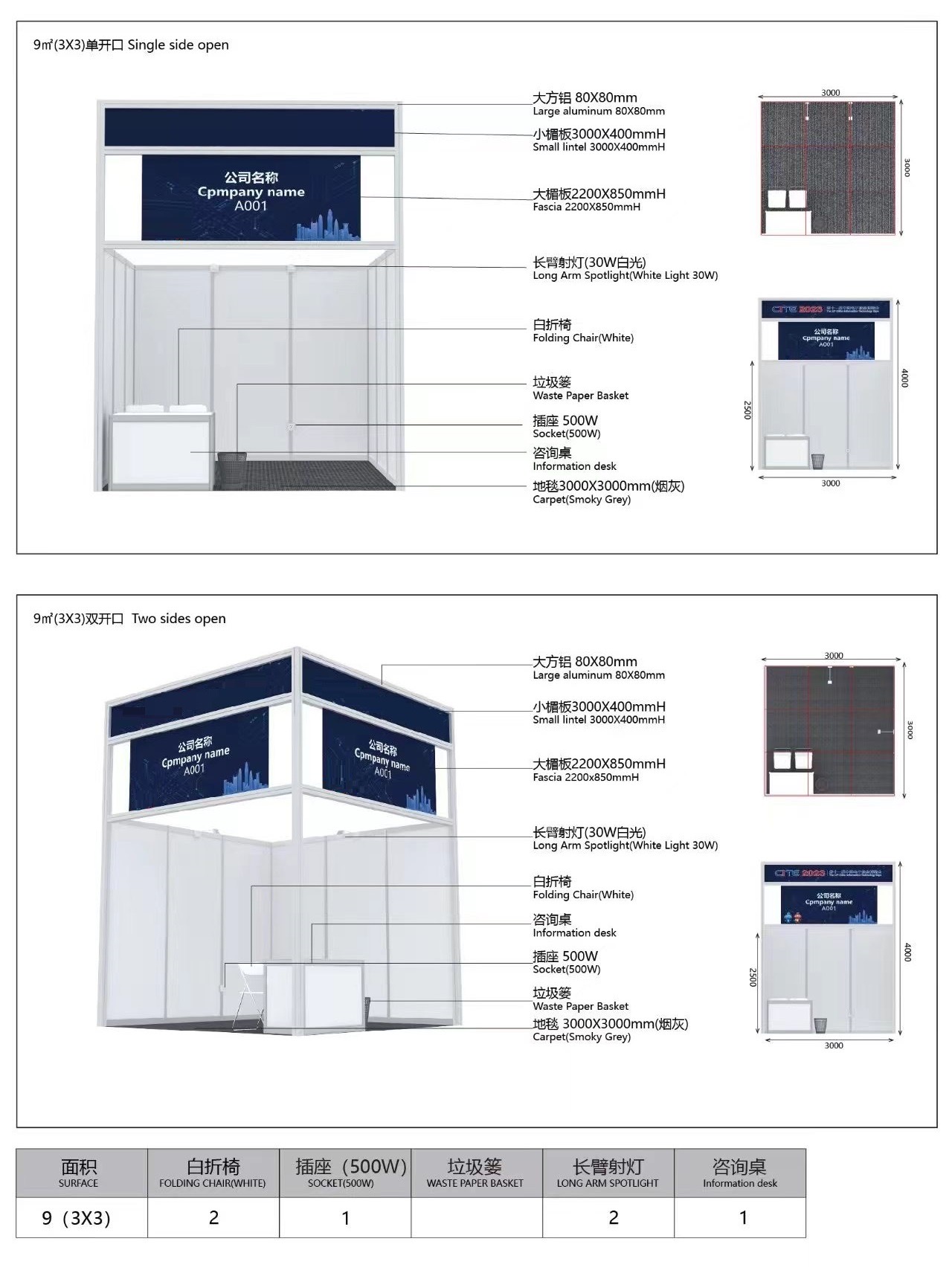 9㎡标准展台示意图:
